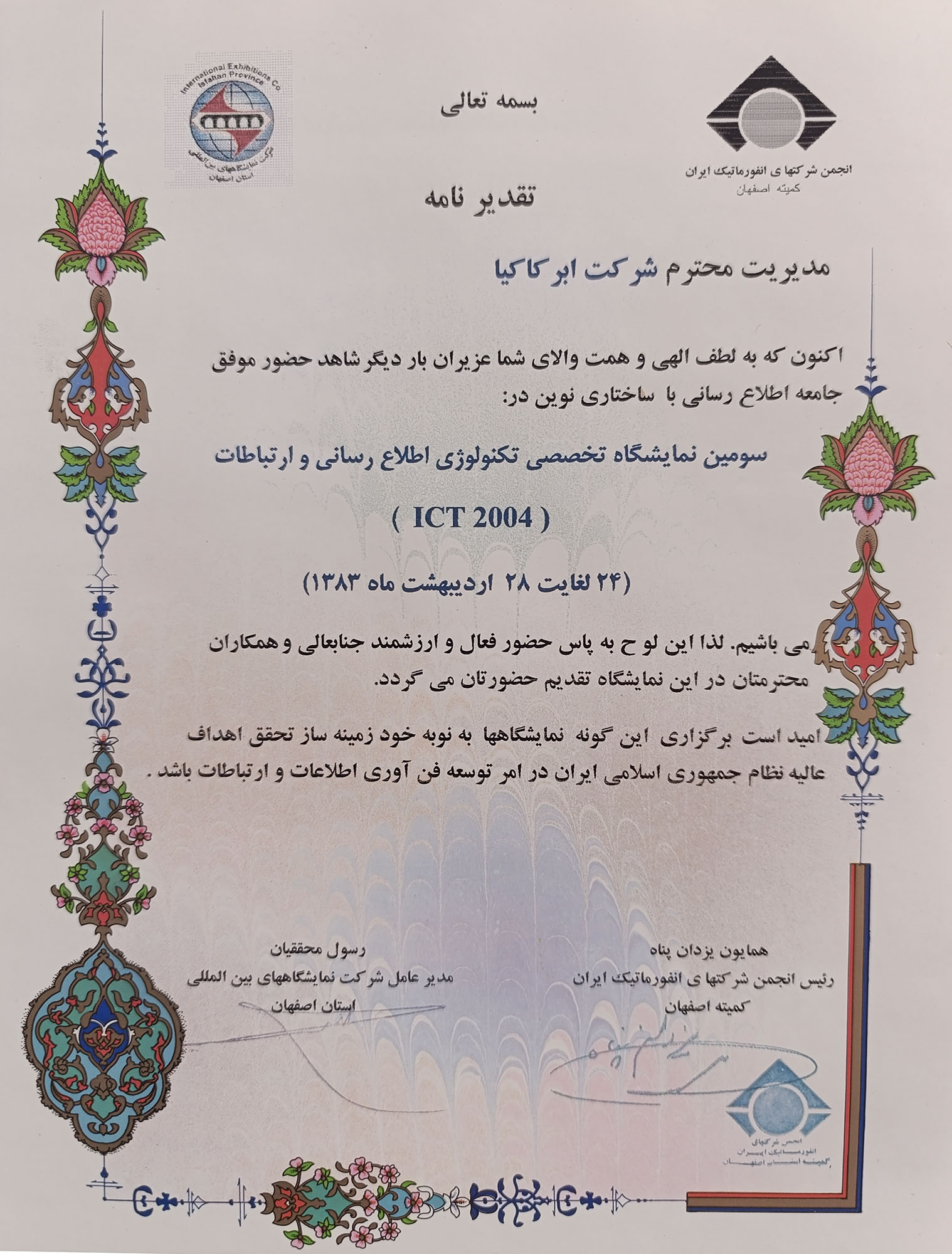 شرکت در سومین نمایشگاه تخصصی تکنولوژی اطلاعرسانی و ارتباطات اردیبهشت 1383